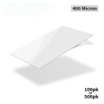 Premier White 320micron Self Adhesive Cards. Cards come with a durable PVC finish and adhesive back, meaning they will stick directly onto clamshell and standard ISO proximity access control cards.