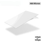 Premier White 400micron Self Adhesive Cards. Cards come with a durable PVC finish and adhesive back, meaning they will stick directly onto clamshell and standard ISO proximity access control cards.